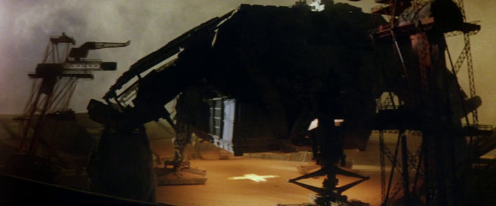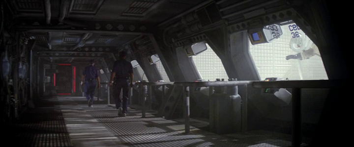His statement seems undercut by various factors: for one, there was considerable talent shared between both films: Martin Bower, Nick Allder, Bill Pearson, John Mollo, and Jerry Goldsmith all helped manufacture the look and sound of both, though Goldsmith was hired primarily because he had worked with Hyams previously on Capricorn One. Most telling is the allegation that Outland’s design office was adorned with a notice that read, ‘Make this film look like Alien.’