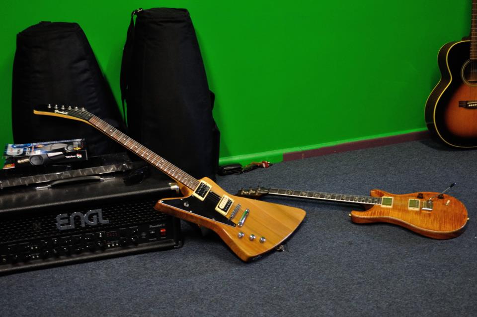 Here’s a quick snap of two friends of mine as nature intended, with no pick guards or scratch plates obscuring their natural beauty. I would not say that I am totally anti-pick guards as I think that they are synonymous with guitars from a certain era, and there are certainly guitars that it enhances there overall iconic look. Certainly, guitars such as Explorers look good for it, especially an ES335 because of the time when they were designed. I think with the Ibanez guitars with the HR Giger designs, having a pick guard would just obliterate the art work. If I were to choose from the two Giger designs, I would prefer the one with the locking trem as a playing/working guitar, but if it was a matter of art then I would have to go with the other one. As well as pick guards, I think some of the old trem systems that are found on guitars like Guild and Gretsch look good on those type of guitars because the guitars of that era did not have the artwork you can now get on todays’ guitars. Just like pick guards, having a ton of iron mongery hanging from a guitar is’nt always a great idea.