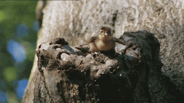 The mandarin ducklings jump from their nest in the tree when the time comes.