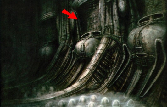 This Mural indicated to me a Genetic/Synthetic Connection between the Ship and the Xenomorph, it indicated to me the Ship produced the Eggs... and indeed this Mural was to be placed over the Egg Chambers Segments that had Bio-Mechanical Pregnant like Bellies that HR Giger had said would produce the Eggs.