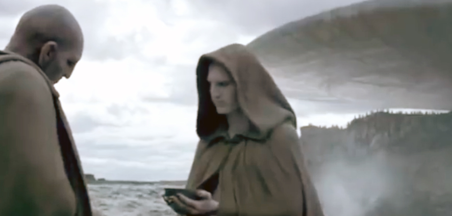 I enhanced the below photos to show the scores of Engineers witnessing the sacrificial Engineer and the elders from the opposing cliff under the large Engineer ship. It could be a hundred or more across the clifftop.