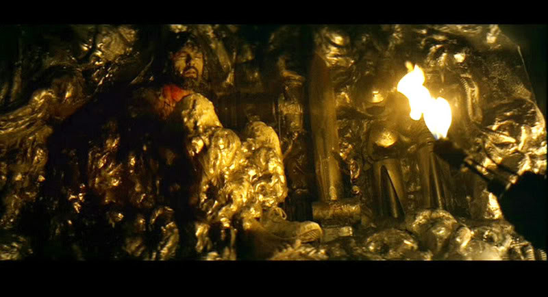 The xenomorph regurgitating fluid and the fluid raining off them seem to coalesce into the biomechanical aesthetic formations that we saw in Alien (Dallas above) and Aliens around the queen's hive under the processor that the Colonial Marines encountered (enhanced image below).