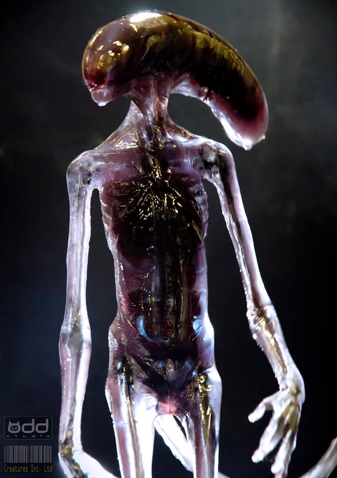 I'm pretty sure the proto-xenomorph at birth was transparent. Its organs and bones are visible.