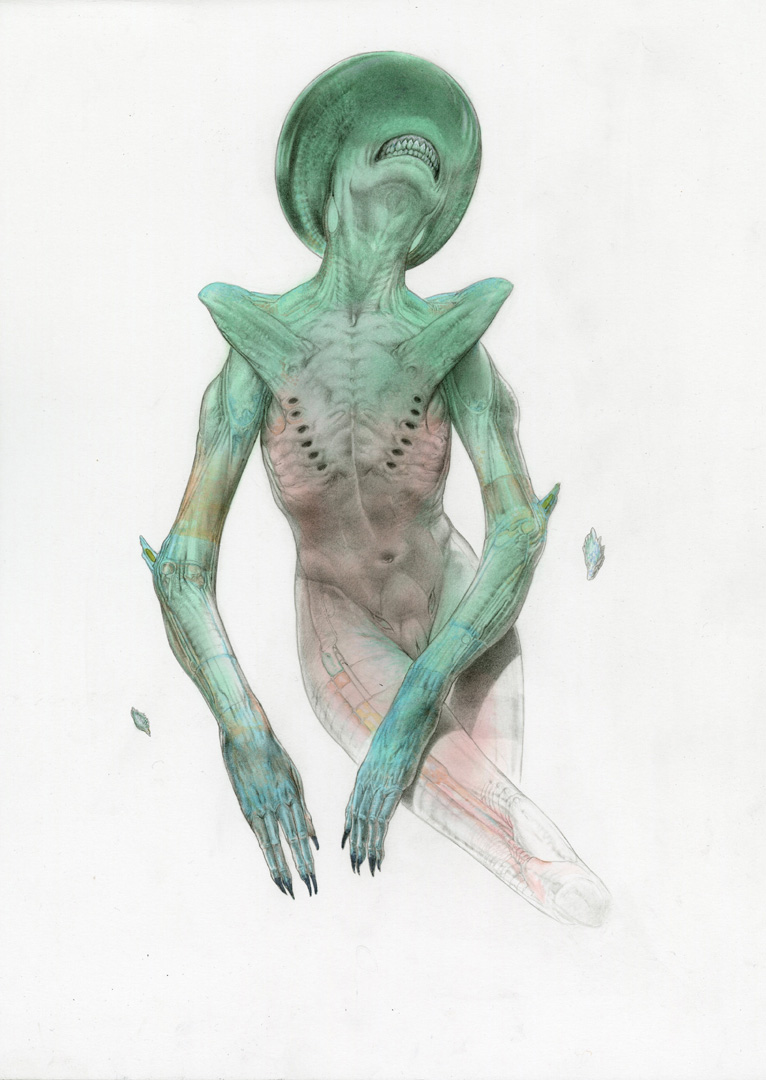 "My Neomorph “Shaw” queen is the last of images still available at Morpheus gallery online.. I can’t attach a link here but it’s there under my name in their search..also crank it up..the track is from my Titan album I recorded for my work for Prometheus.. I was told Ridley used this track to pitch the artwork to the studio to get it green lit.."- Carlos Huante