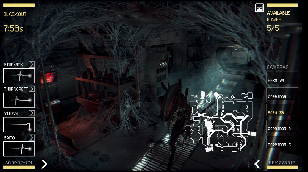 The game swaps between 'third person' video feeds (like Alien Covenant), first-person video feeds, and a top-down real-time map. Amanda communicates with survivors over a station PA to formulate actions and plans. You can directly interact with individual survivors telling them to hurry up, hide, stop etc.