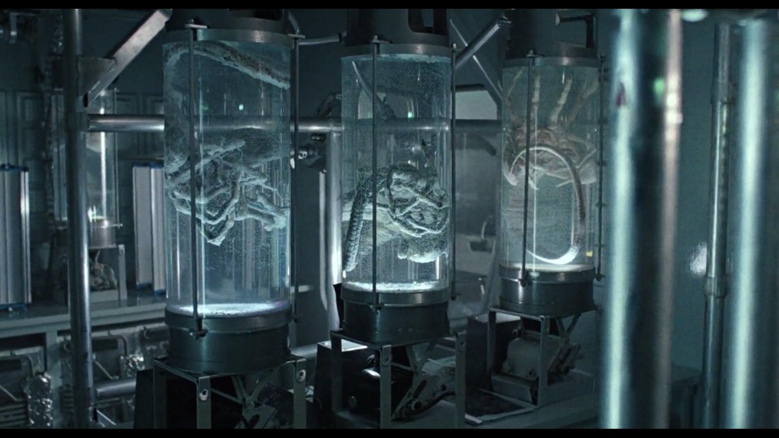 3) Using either ONE of the Face Huggers to Experiment on, or Experiment from the Resulting Chest Buster, we see David is able to Engineer a Queen. I think having some Black Goo could be a handy way to Engineer such.