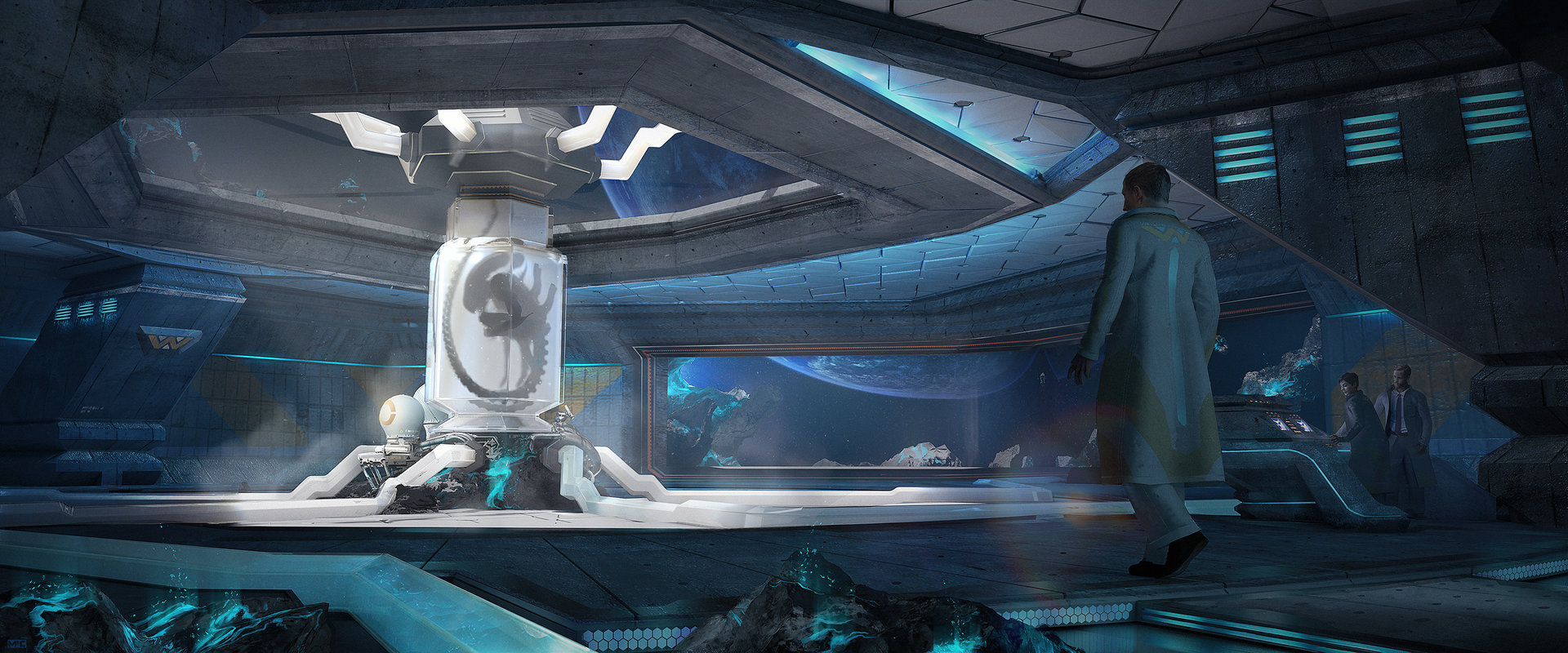 As for Origae-6, I think what setaverde has speculated will be part of what we will see - that David will establish a facility on the planet using the Covenants colony modules, in which he will use his two Facehuggers to mass produce his version of the Xenomorph. Visually I expect this facility, in its prime, would have been reminiscent of similar facilities seen in Doom 3 and various Alien comic-book/video-game concept art.