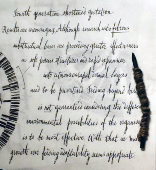 I do like the trial and error notes David took during his development of the "perfect organism", above.