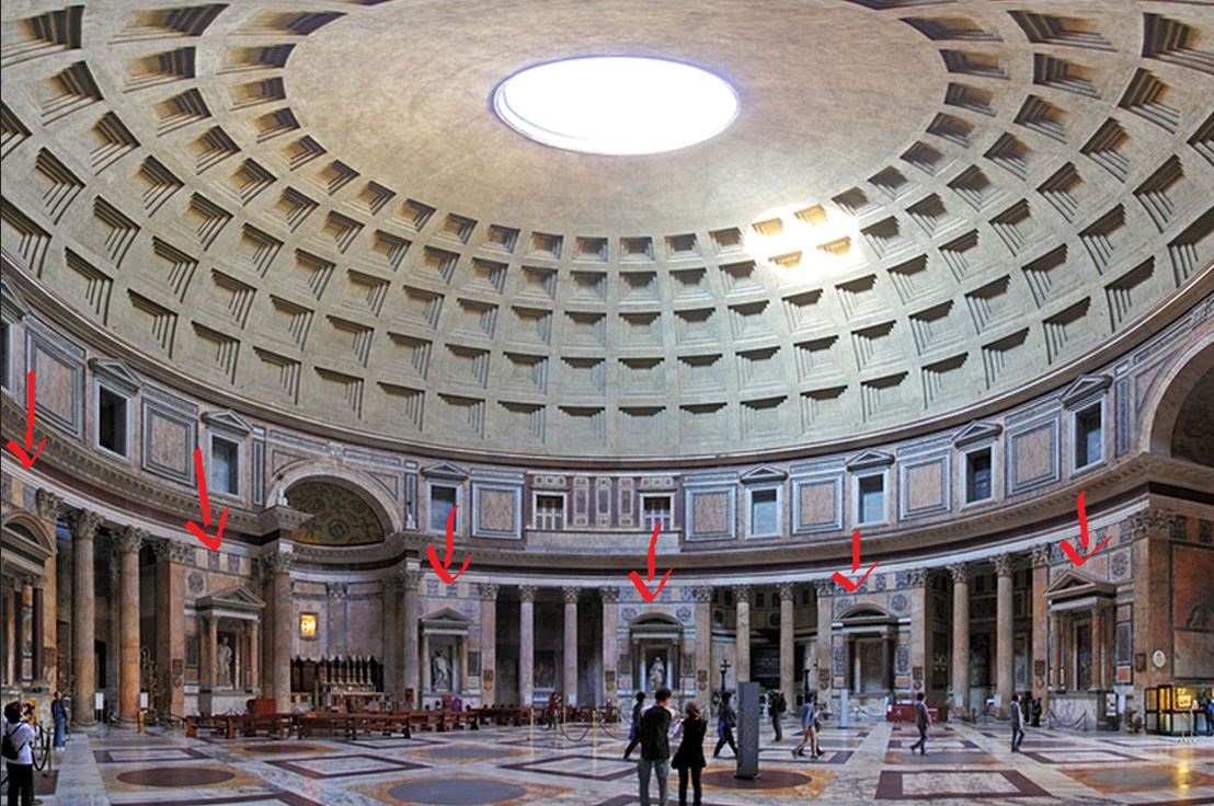 Inside the Pantheon. You can see some of the tombs here